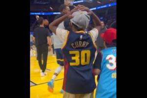 球迷日活动库里和小球迷击掌 小球迷疯了:我再也不会洗手了!