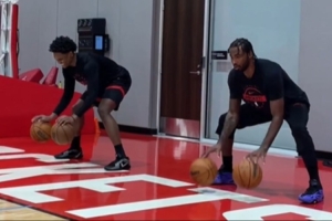 阿门与伊森一同进行运球训练!火箭官方:恐怖双胞胎保持同步